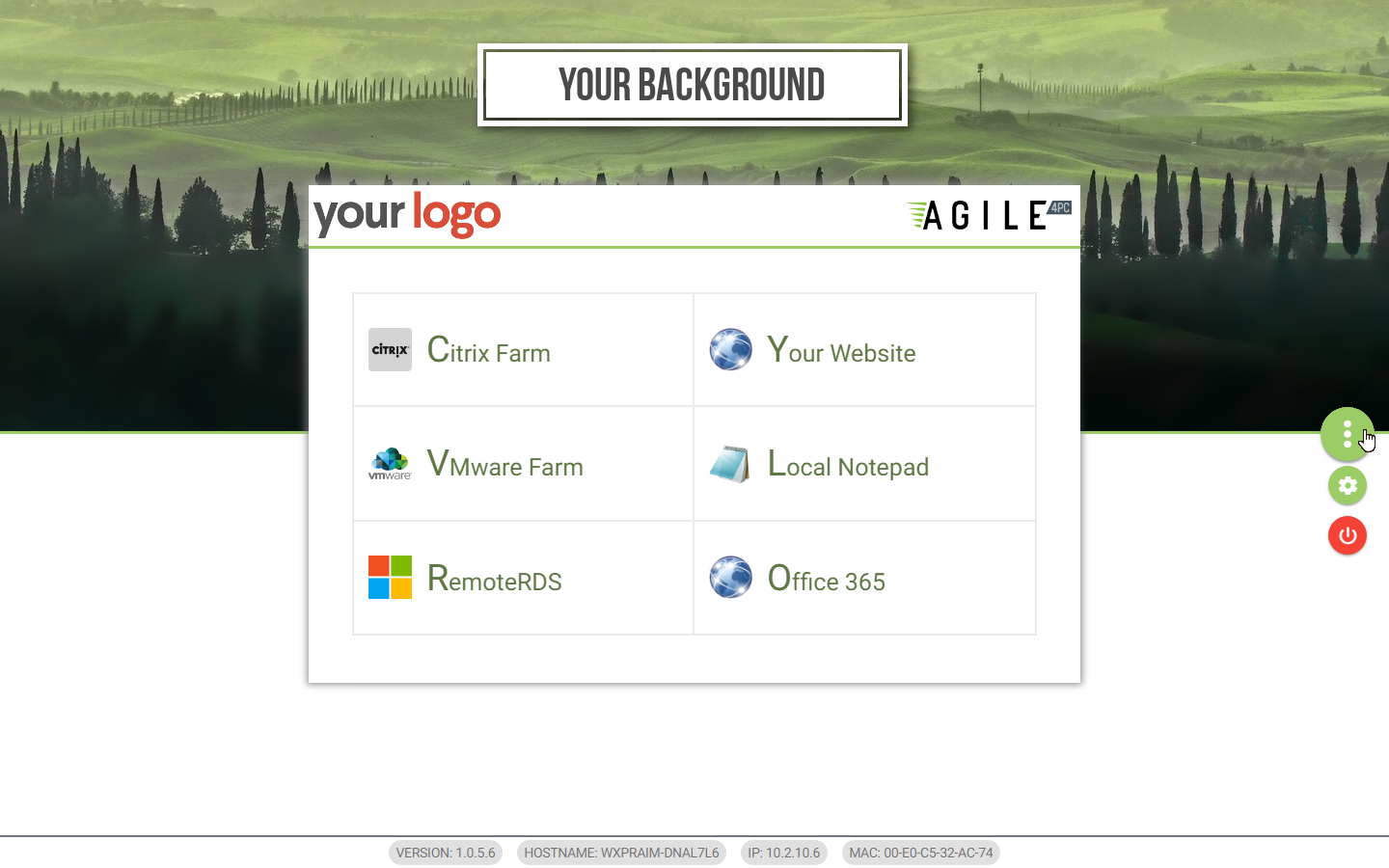 Agile4PC also allows implementing a uniform look and feel across all PC devices in the organization, regardless of the make/model of the device. This includes the ability to setup a “Browser Kiosk” for quick and secure public access locations that connect back to the VDI environment.