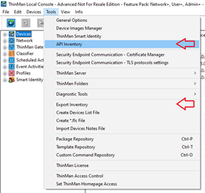 ThinMan Advanced ofrece la funcionalidad Inventario API a través del Feature Pack ADMIN+. Los Feature Packs son licencias específicas para usar ThinMan que habilitan funciones avanzadas. El pack ADMIN+, en particular, incluye funcionalidades diseñadas para aumentar la seguridad y optimizar aún más la gestión TI de empresas estructuradas de tamaño medio-grande, caracterizadas por equipos de colaboradores o help desk, y con necesidades de continuidad del negocio y alta integración (DB externa y backup, posibilidad de conexión a múltiples dominios vía LDAP, listas de control de acceso para usuarios TI y uso de múltiples consolas ThinMan, incluso remotas).