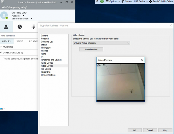 Un’altra verifica veloce è quella di andare all’interno del configuratore di Skype for Business, e analizzare i device video presenti. Se compare VMware virtual webcam la webcam è utilizzata attraverso Real time audio video, se invece la webcam è visualizzata con il nome specifico del device significa che l’ottimizzazione sta funzionando a dovere.